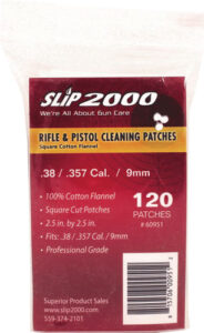 SLIP 2000 CLEANING PATCHES – 2.5″SQ .38/357/40/9mm 120-PAC