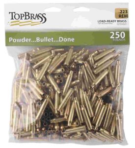 Top Brass Unprimed Remanufactured Rifle Brass .223 Rem Bagged Header Card Grade A+ 250/ct