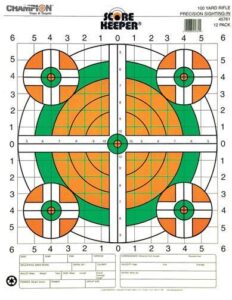 Champion Scorekeeper Targets Fluorescent Orange & Green Bull – 100 yd. Rifle 12/Pack