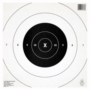 SCORE KEEPER FLUORESCENT ORANGE & BLACK BULL TARGETS – 50′ PISTOL SLOW FIRE, 12/PK