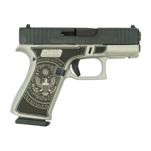 Glock 43x MOS Custom “Trump 2024 Crushed Silver Distressed” Subcompact Handgun 9mm Luger 10rd Magazines (2) 3.41″ Barrel Black 5.5lb Trigger Front Rail Austria