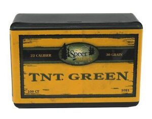 Speer TNT Green Rifle Bullets .22 cal Hornet .224″ 30 gr TNT- grN 100/ct