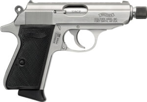 WALTHER PP SD 32ACP STAINLESS – 8RD THREADED BARREL BLK GRIPS