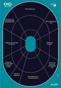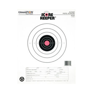SCORE KEEPER FLUORESCENT ORANGE & BLACK BULL TARGETS – 50′ PISTOL SLOW FIRE, 12/PK
