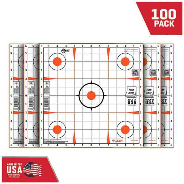 The EZ Aim® Sight Grid Target is a great all purpose target. The bound design is easy to handle and keeps targets looking great. It has five aiming points on a one-inch grid background. The grid background makes sight or scope adjusting easier. The target is 12 x 12 inches. Two color print Aiming points are one inch bright orange color. Black gridlines and details. 100 targets per pack