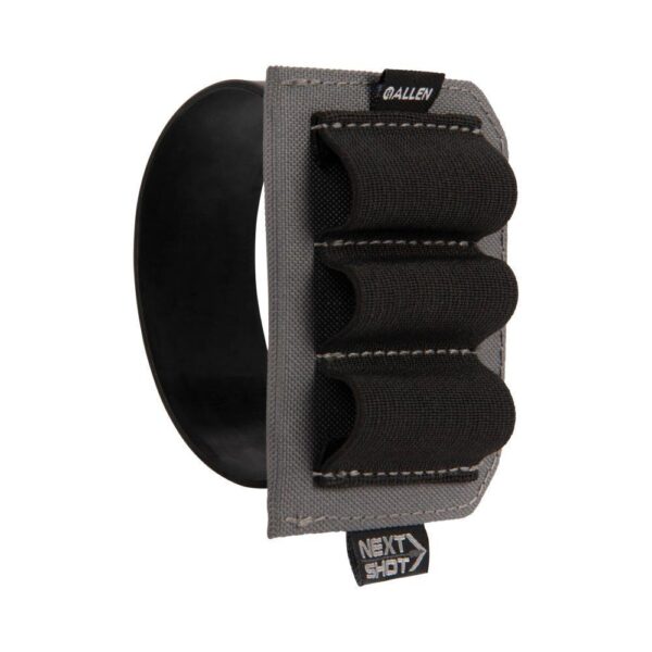 The Next Shotgun Shell Carrier is purpose built designed to hold up to three 12-gauge shotgun shells. Made with a flexible silicone band the shotgun shell carrier can easily be attached to the buttstock of your firearm sized to fit over most stock sizes. The soft silicone construction of the band alleviates any harm left to your firearm when applying or removing from the buttstock. The shell carrier is designed with one vertical row of elastic cartridge loops sized to fit 20-gauge to 12-gauge shotgun shells. Choose the Allen Company Next Shot Shotgun Shell Carrier as the well thought out solution for your next hunt.