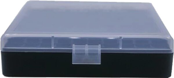 All Berry?s Ammo Boxes are made from high impact polypropylene for increased strength against cracking chipping warping expansion or contraction. Our Model #008 100 round boxes feature our new stronger flip-top design allowing the securing of ammo storage with easy one-handed operation. Along with a translucent lid they now come with a black base for increased strength and a clean look. They are stackable they carry a lifetime warranty and they are made in the USA
