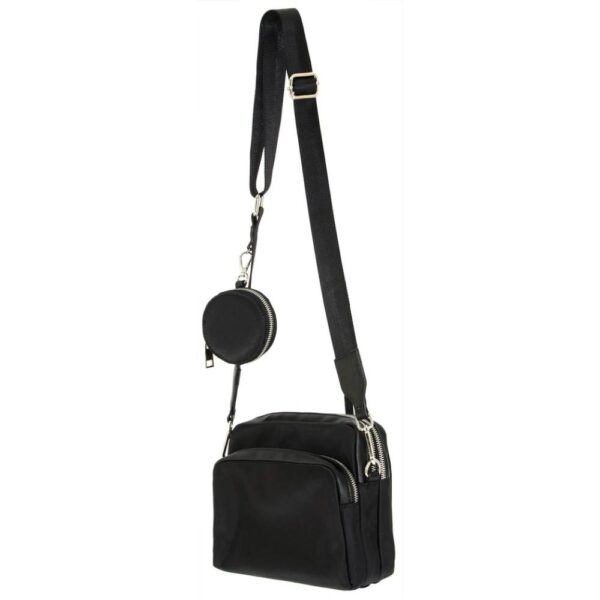 Made from durable water-resistant and stain-resistant nylon Harper is the perfect bag for when you are on the go. Do not be fooled this lightweight bag is large enough to carry all your everyday essential items in either main zipped compartments as well as a separate detachable coin purse. The detachable fabric shoulder strap makes carrying comfortable for everyday use. The silver hardware goes beautifully with this crossbody and completes every look with a classy style.