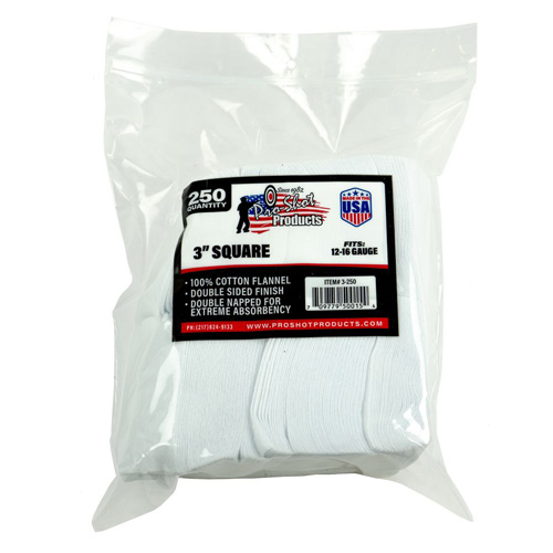 COTTON FLANNEL CLEANING PATCHES – 12-16 GAUGE, 250 COUNT