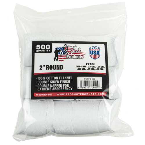 COTTON FLANNEL CLEANING PATCHES – 2″ ROUND – .270-.38 CALIBER, 500 COUNT