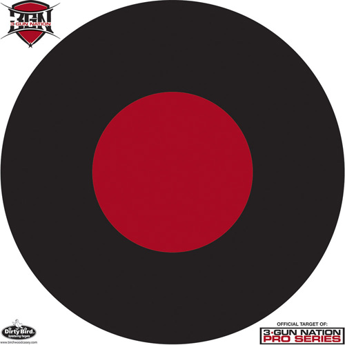 Dirty Bird Targets reveal a white ‘splatter’ that appears upon bullet impact, which allows you to easily spot each shot. The non-adhesive back also allows you to affix to a surface as you wish, add notes, and then easily save the targets for future reference. This target designed with 3-Gun Nation features two scoring areas – a 17.25″ secondary, or “B” zone, and an 8″ primary, or “A” zone. One hit in the “A” zone is considered a neutralized target, or two hits anywhere in the “B” zone.