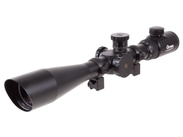 With its large objective lens and huge 8-32x magnification the Optima E-SFT will have no trouble sighting your target over varied distances. Each features an illuminated mil-dot reticle with 11 different brightness setting for shooting in all-weather conditions. This ability is further enhanced by its rugged 30mm tube that is waterproof shockproof and fog resistant. Each scope includes 11mm Dovetail rings that are premounted so you can get sighted right away.