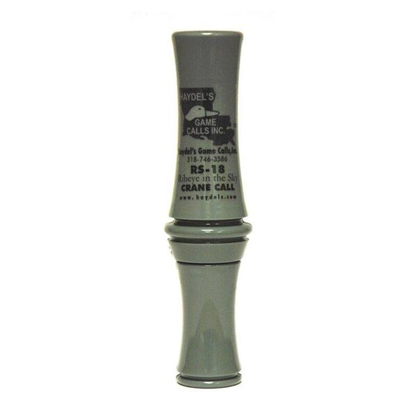 The RS-18 RIBEYE IN THE SKY SANDHILL CRANE CALL. The RS-18 RIBEYE IN THE SKY SANDHILL CRANE CALL is a hybrid design acrylic tone board utilizing a special reed. This makes a call that is loud yet easy to run. Many different pitches can be achieved with this sandhill crane call to sound like more than one bird. Soon you?ll be eating some of that ribeye in the sky.