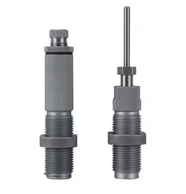 The Hornady Custom Grade New Dimension 2-Die Set is a great die set for the avid reloader. This die set includes a Custom Grade New Dimension (CGND) Full Length Sizer Die and a CGND Seating Die. The Full Length Sizer Die features a Zip Spindle with a series of light threads cut on the spindle and spindle collet. This eliminates spindle slippage and makes tightening the spindle lock a breeze when making adjustments. The floating bullet alignment sleeve and stem in the CGND Seating Die improve bullet seating and accuracy by pre-aligning the bullet and case before seating. The seating die also applies a crimp to secure the bullet in the case. The CGND die set comes packaged in a plastic storage box and includes two Sure-Loc rings. Shellholder is sold separately.