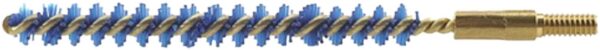 Premium Iosso Eliminator bore brushes are made with a fiber that is cobalt blue in color so it can’t be mistaken for any other type brush. This thicker stiffer grade of fiber allows for back and forth action unlike traditional brass and bronze type brushes. They may be used several times before becoming worn. This brush is wound tighter and has more fiber per inch than any other brush. Use with the Iosso Bore Cleaner and Triple Action Solution to remove all fouling; copper lead plastic wad and carbon burn. It drastically reduces cleaning time and the result is an unbelievably clean bore. These brushes are available in rifle pistol shotgun and black powder sizes. The blue brushes are a Trademark of Iosso Products.