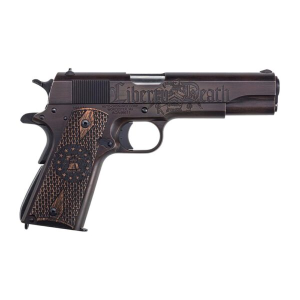 Custom Goncalo wood grips custom engraved with Gadsden Flag and "Don't Tread on Me" motto finished in a custom Cerakote brown and black. One 7rd magazine.
