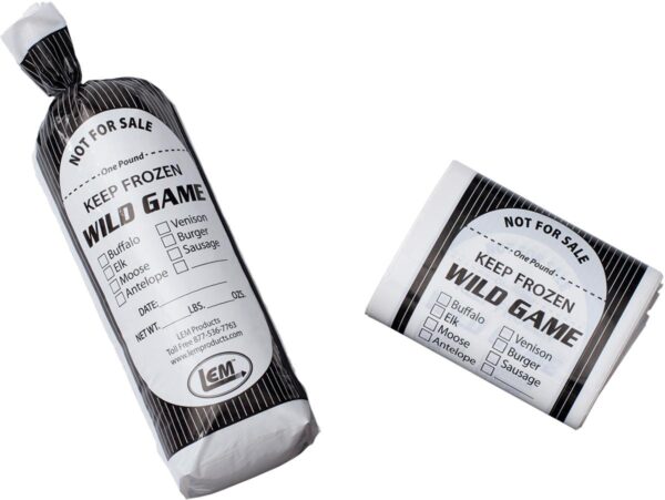 Pack your wild game meat the easy way. Quality opaque polyethylene bags have a 1 1/2" bottom gusset for added burst protection. The heavy 2 mil thickness guards against freezer burn. When filled and frozen they stack neatly in the freezer. Seal bags with our Poly Bag Taping Machine and Poly Bag Tape – or seal with Hog Rings and Pliers. "NOT FOR SALE" printed on all bags. 2lb. bags are 13-3/4" long x 4-1/4" wide