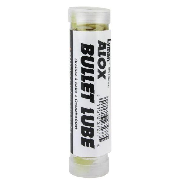Although there are many different types of lubricants used for reloading and casting Lyman Alox Bullet Lubricant is high quality and backed by a solid company guarantee. This lubricant is sold in a hollow stick form and designed to work with the Lyman 4500 sizer/lubricator with or without heating element although it works best when heated.