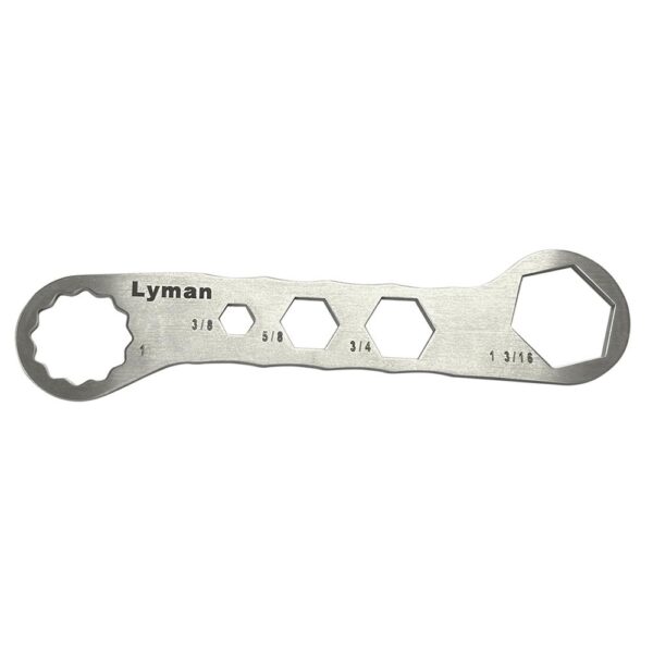 Lyman’s Brass Smith Die Wrench fits all Lyman die nuts including die body expander plug seating screw and decapping rod lock nuts. This includes the 1” lock nuts used on our Pro dies as well as Dillon dies. Made of rust resistant stainless steel the closed end design offers added strength with thinner side walls allowing easier fit between dies. The 5 openings accommodate the following size nuts: