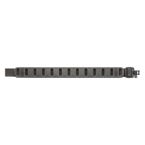 The CLAW Sling System is widely known for having the best non-slip pad incorporated into a sling. The extremely durable and odor resistant pad is molded into the sling webbing to allow approximately 1/2” of stretch. This stretch spreads the weight of the firearm across the shoulder area greatly increasing your comfort. The unique gripping action of the non-slip pad keeps the firearm in place on your shoulder eliminating the tugging rolling and pulling caused by other slings on the market. Hunting in extreme conditions this season? The CLAW Sling will last as long as you do in anything from miserably hot to arctic cold weather conditions. The pad will remain flexible to -40 degrees fahrenheit and is U.V. stabilized to eliminate fading or cracking. The durable CLAW Rifle Sling can be used with rifles shotguns or any firearm with swivel studs mounted on the buttstock and barrel. As an added value the CLAW Rifle Sling includes HUSH STALKER II QD Metal Sling Swivels. Comfortable to use and easy to clean the CLAW Rifle Sling will not hold water like foam urethane or leather slings.