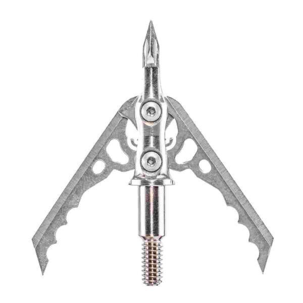 The revolutionary Rage Hypodermic NC +P utilizes cutting-edge finger-like tabs on the blades’ Slip Cam™ pivot point to “anchor” them in place while in the closed position completely eliminating the need for a SHOCK COLLAR™ dental band or O-ring while still providing reliable blade retention. Upon impact the blades instantly deploy to a 1 3/4-inch cutting diameter administering the gaping wounds that bowhunters have come to expect from the field-proven Rage Hypodermic series. The Hypodermic NC +P features the lethal Hypodermic hybrid tip with an even narrower profile and needle-like ferrule and swept-back blade design for deeper penetration. In flight that streamlined design makes for superior field-tip accuracy. The two .035” thick blades deploy on impact sliding into a swept-back blade angle while the 1.75” cutting diameter delivers a wide entry hole for gruesome blood trails and brief tracking jobs.