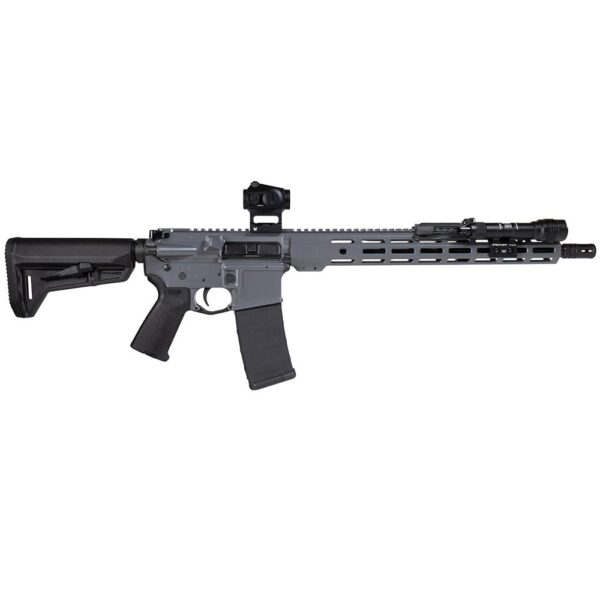 Introducing the Grey Night AR by Shark Coast Tactical: Where style meets precision. This mil-spec masterpiece boasts a custom Grey Cerakote finish for durability and style while the Vortex Crossfire Red Dot ensures pinpoint accuracy in low-light conditions. Illuminate your path with the 625 Lumen ProTac RailMount Light and enjoy enhanced control and handling with a matching Magpul stock and grip. Each rifle includes a double rifle carry case and an official Shark Coast patch. Upgrade your arsenal and redefine your missions with the Grey Night AR.