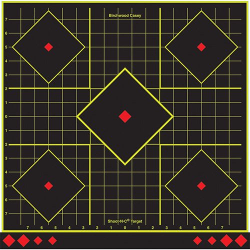 Five targets on each sheet – use center target for sighting-in and four smaller targets for testing results of various ballistic loads or for confirmation of sight-in groups. Convenient 1” numbered grid lines simplify scope adjustments