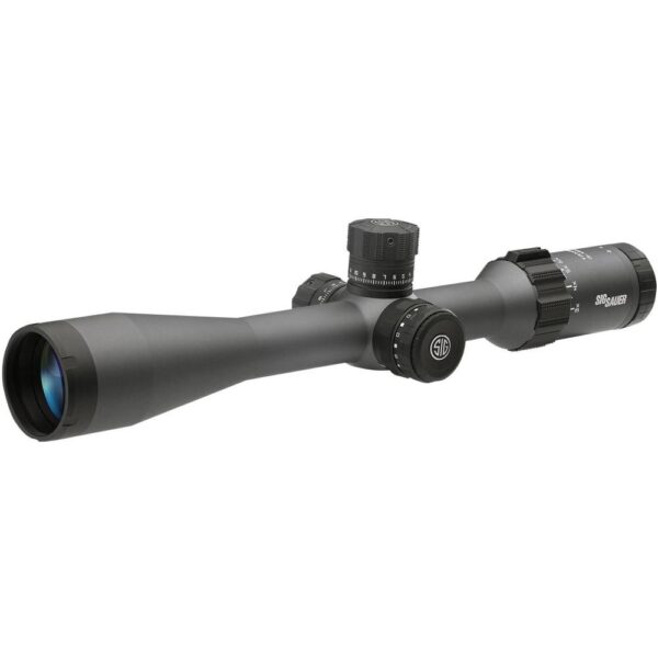 The Sig Tango-DMR features a zero stop multi turn press to unlock elevation dial; low profile capped windage; lightweight design. Includes sunshade and removable throw lever.