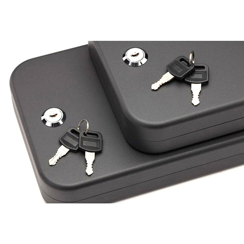 The SnapSafe® Lock Box provides secure storage for handguns and other valuables at home, on a nightstand, in the car, or when traveling. All SnapSafe Lock Boxes come with a heavy duty 1500 lb. rated steel cable that secures to any stationary object including a vehicle seat or heavy piece of furniture. The patented, space-saving receiver of the cable allows maximum storage space inside the box. The Lock Box also provides security for concealed carry permit holders.