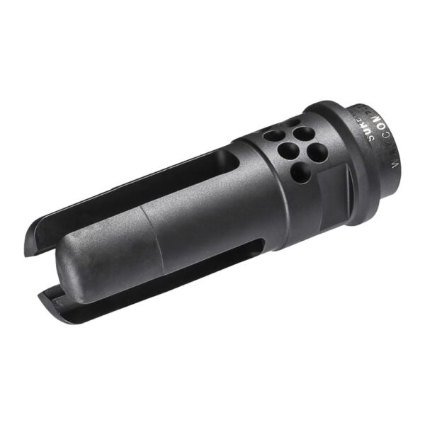 Flash hider? Muzzle brake? The proprietary design of SureFire’s WARCOMP flash hiders/suppressor adapters provides the best attributes of both devices. WARCOMPs deliver superior flash reduction and significantly reduce muzzle rise helping to conceal your location preserve your dark-adapted vision and keep you on target for faster follow-up shots. They effectively eliminate more than 98% of all muzzle flash even on short-barreled rifles and their port direction can be optimized for virtually any shooting style. Precision machined from U.S. mill-certified heat-treated stainless steel bar stock every WARCOMP includes high-precision single-point cut barrel threads for optimum thread interface. DLC coating provides maximum protection under harsh environmental conditions and facilitates cleaning even after extreme use. Surefire WARCOMPs are the best suppressor adapters in the world. Period.