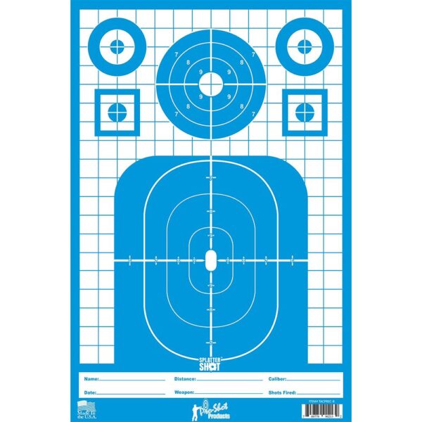 12" X 18" SPLATTERSHOT BLUE TACTICAL PRECISION HEAVY TAG PAPER TARGET (Pistol/Rifle/Shotgun)