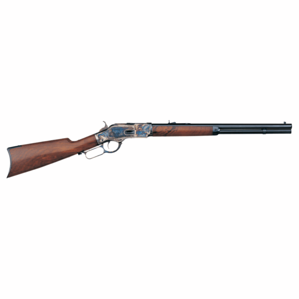 The 1873 model became an immediate favorite upon it's release by the Winchester Repeating Arms Company. Thoughts were that the domestic military sales would make up most of the orders for the lever action but this model ended up being more popular with civilians and international military. The 1873 Rifle was the first lever-action available with broad variety of options and it's still offered today in many varieties to meet all types of shooter's needs. This model features a case hardened frame with a blued barrel and a classic smooth walnut stock and forend.
