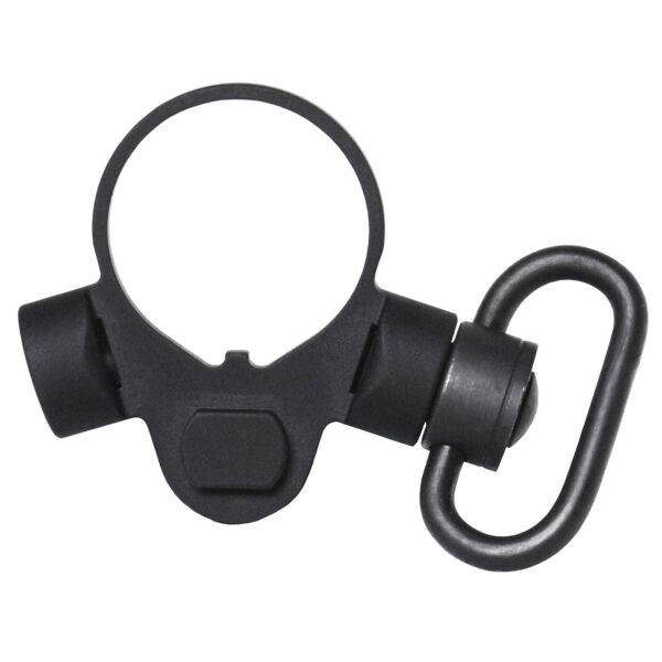The Troy OEM M4 Sling Mount replaces the factory M4 carbine receiver end plate incorporating ambidextrous quick detach swivel mounts. Includes heavy-duty quick detach push button swivel. Made from hardened aircraft aluminum with stainless steel push button.